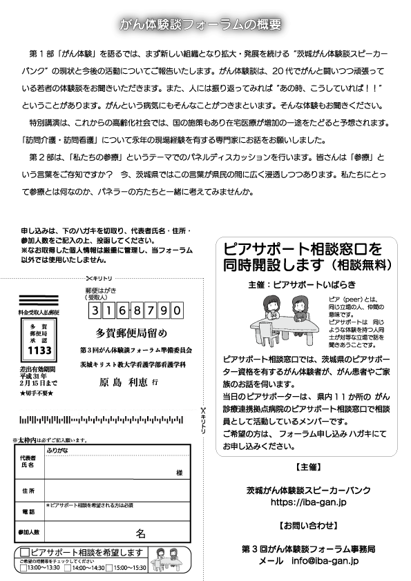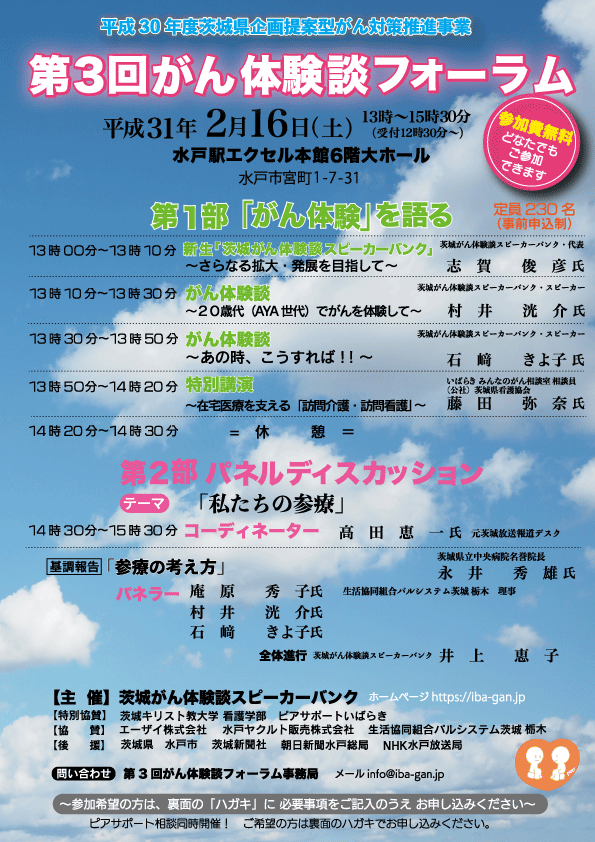 主催は 茨城がん体験談スピーカーバンク です。