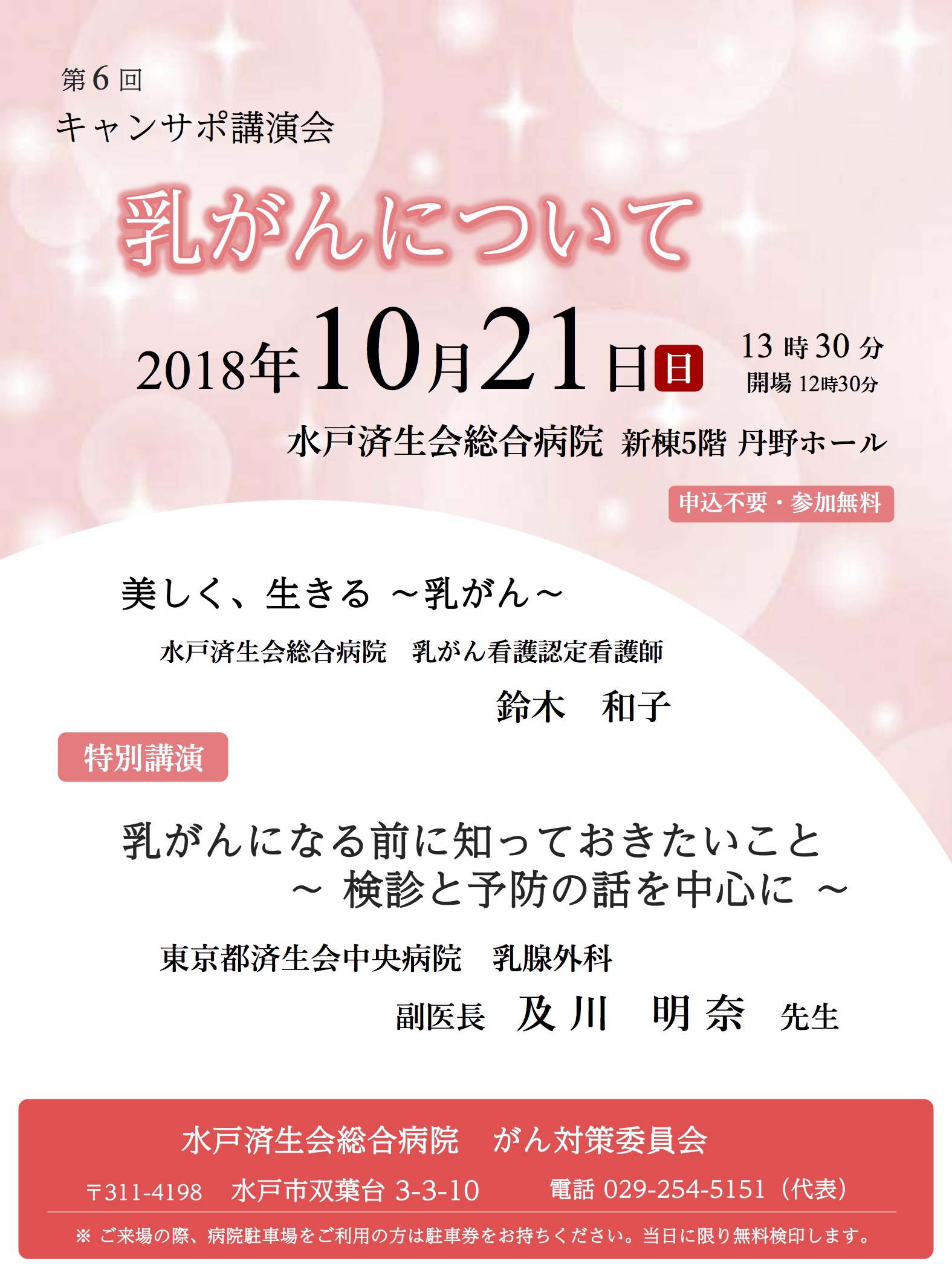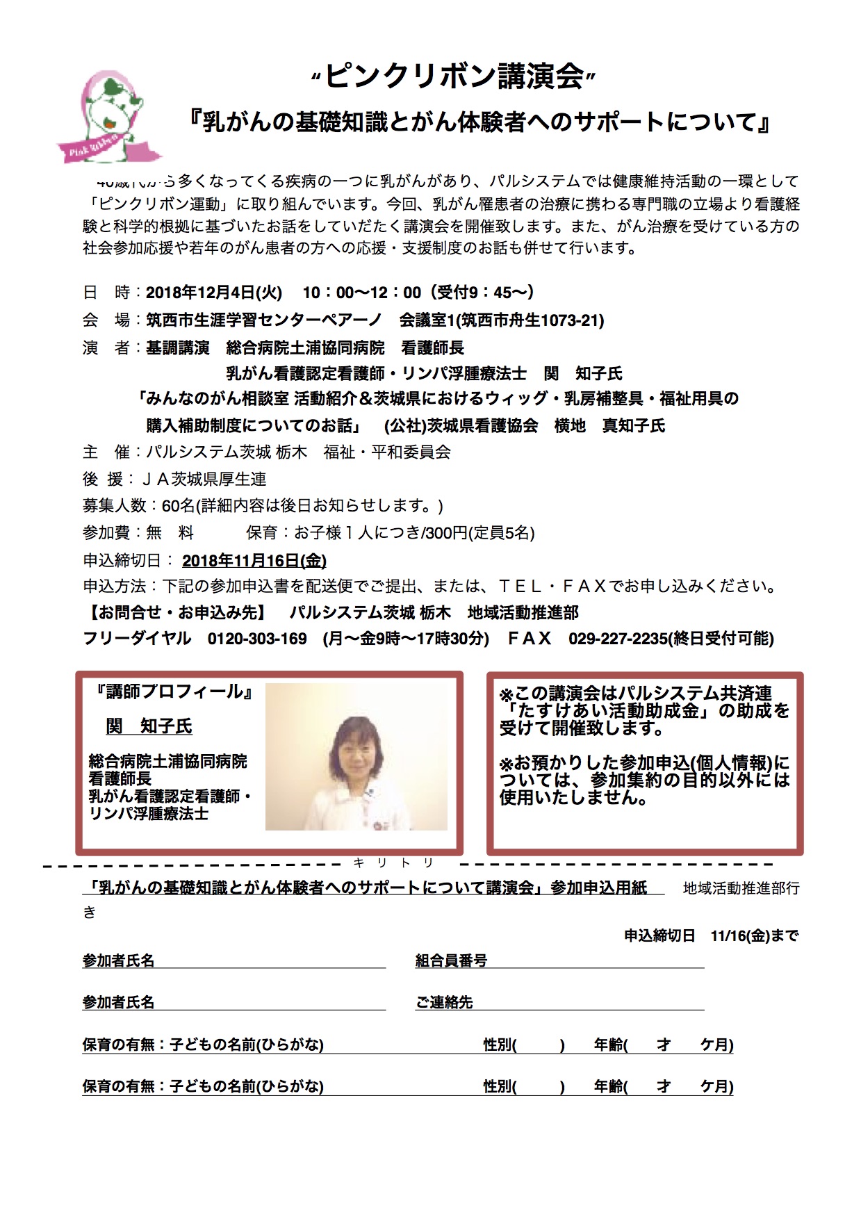 『乳がんの基礎知識とがん体験者へのサポートについて』のご案内がありました。