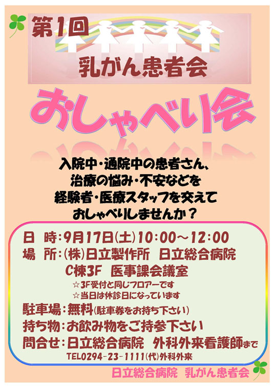 日立総合病院 乳がん患者会「おしゃべり会」